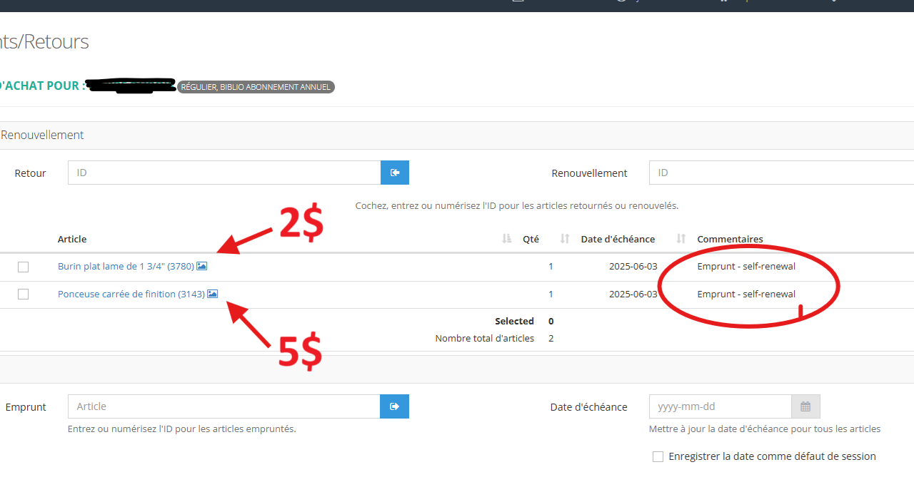 [NOUVEAU] Les renouvellements deviennent payants à partir du 2 juin 2025. Tarifs des renouvellements: 2$ pour un outil manuel et 5$ pour un outil électrique.